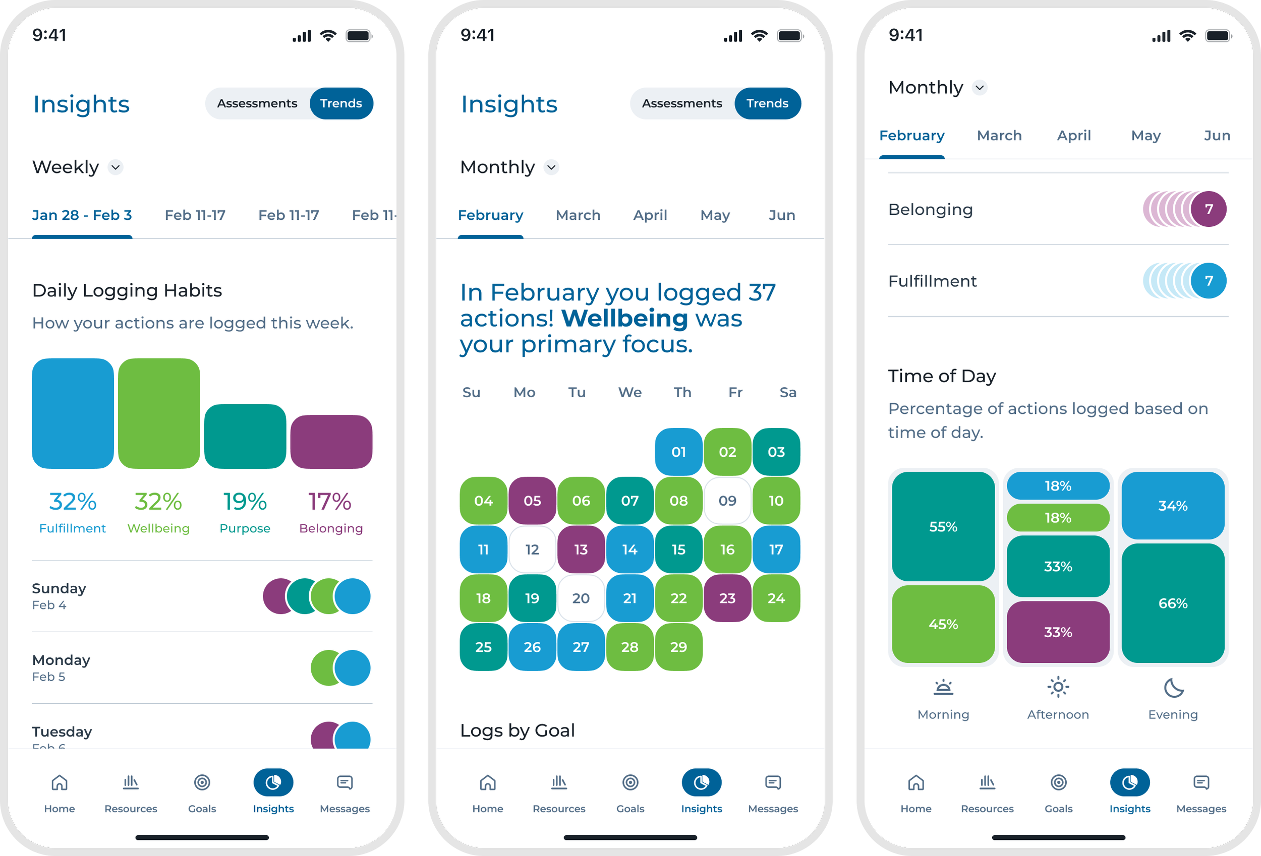 Additionally, at all times patient’s and coaching staff can see trending data across how their actions are being logged across each quadrant of Wholeness and identify areas that need more attention.